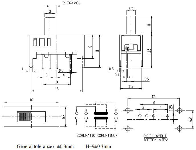 स्लाइड स्विच आयाम