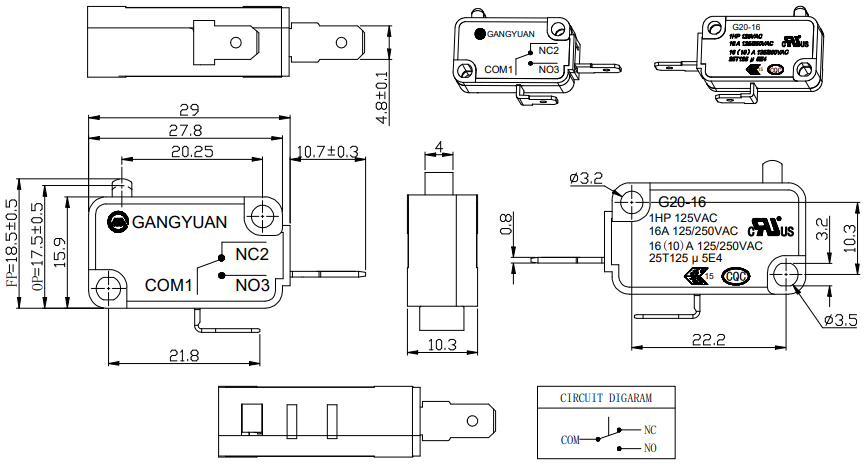 प्रकार: UL प्रमाणित माइक्रो स्विच