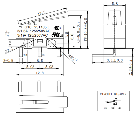The 12.8×5.8 मिमी माइक्रोस्विच यह एक किफ़ायती, मध्यम-कॉम्पैक्ट विकल्प है। इसके मुख्य लाभों में शामिल हैं: एक ऐसा आकार जो