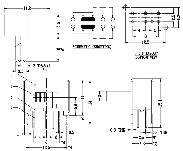 2. तीन स्थिर स्विचिंग पोज़िशन (3T - ट्रिपल थ्रो, ऑन-ऑफ-ऑन)