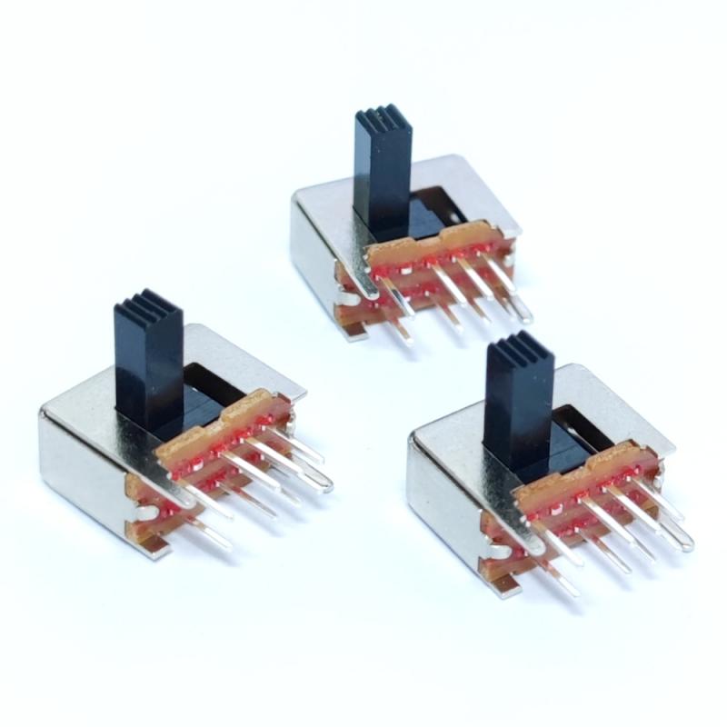 DP3T (डबल पोल, ट्रिपल थ्रो) तीन अवस्थाओं (जैसे, ON-OFF-ON) के साथ एक साथ दो सर्किट स्विच करता है। उच्च आवृत्ति संचालन के लिए यांत्रिक स्थिरता (जैसे, डिवाइस मोड स्विचिंग)।